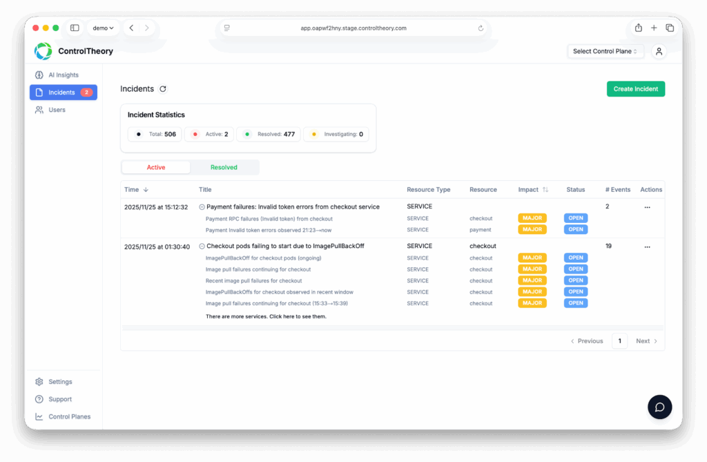 - Incident Layer – Möbius agents continuously investigate anomalies, generate narrative explanations, and deliver actionable next steps.