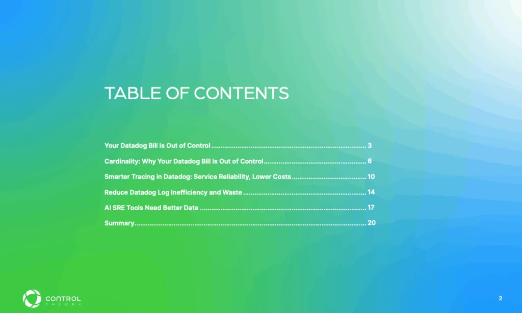 You love Datadog. You just want to make it run more efficiently. Or maybe you’re ready to move on from Datadog and want to give it one last chance. Either way “A Guide to Controlling Datadog Costs” eBook lays out some practical best practices on how you can control Datadog costs, including four foolproof tricks for: