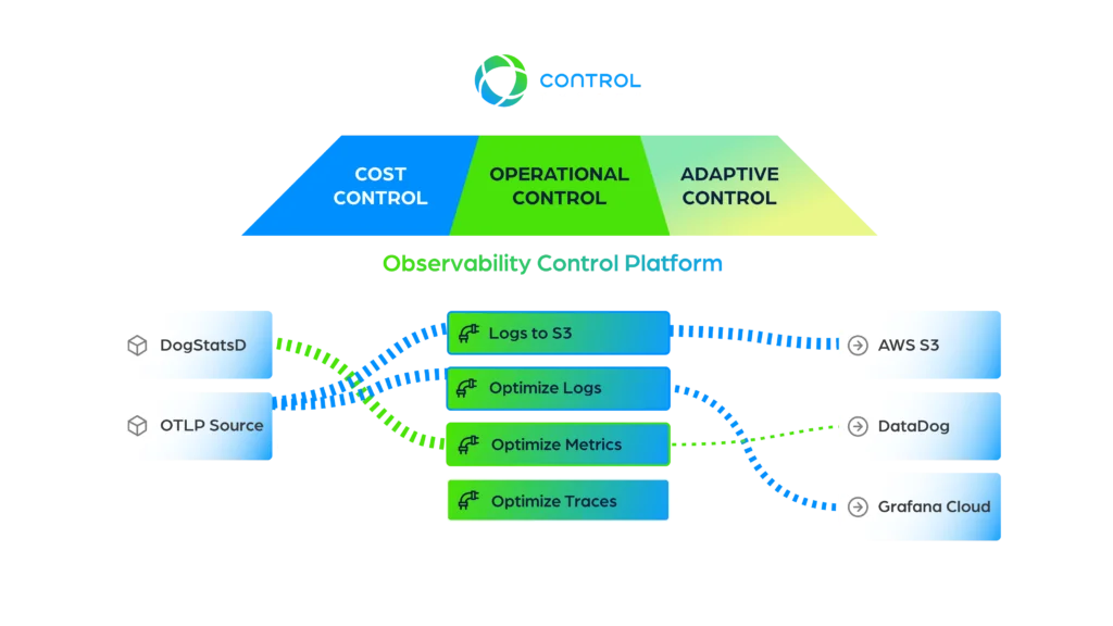Elastic Telemetry Pipelines leverage feedback loops for cost control, operational control, and adaptive two-way feedback to auto-scale, auto-tune, and continuously improve. Shape telemetry in flight to lower cost and improve root cause and incident management by detecting spikes, reducing metric cardinality, intelligently rerouting, filtering, and tail-sampling logs and traces.